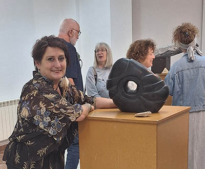 Arias expresó su admiración por esta creadora multidisciplinar con espíritu renacentista que ha expuesto en las salas más emblemáticas de la provincia y conjuga en sus proyectos poesía con narrativa, ilustración, música o arte visual y plástico. En la muestra que se presentaba, afirmó que ha sido capaz de transformar la piedra en obras de arte, trabajando los materiales más duros hasta convertirlos en piezas moldeables.