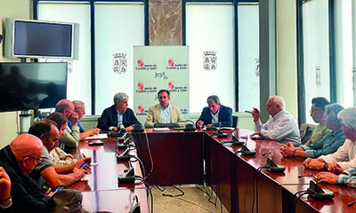 El director general de Desarrollo Rural, Jorge Izquierdo, y el delegado territorial de la Junta en León, Eduardo Diego, mantuvieron dos reuniones con responsables municipales de las zonas afectadas por los incendios de este verano para explicar el proyecto de construcción de balsas destinadas al abastecimiento ganadero.