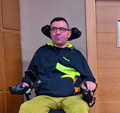 En primer lugar, refrescó sus recuerdos de montaña y ciclismo en los que disfrutó al 100%: desde las grandes rutas en BTT o a pie hasta los retos y carreras por montaña. Tras ello, relató el accidente que cambió todo en su vida para adentrarse posteriormente en el proceso de lucha contra su lesión medular, disminuyendo hasta los 0 km/h para, poco a poco y con la mirada puesta en el futuro, acelerar y afrontar su nueva forma de vida. Un camino duro y difícil que encara con la misma entereza y decisión con la que vivía el deporte.